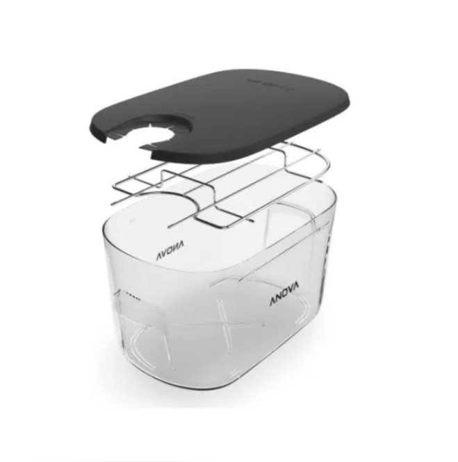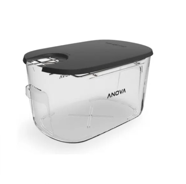 המיכל, המותאם למכשירי הבישול של אנובה, מיועד לבישול בואקום ועוצב לשם כך. הדפנות המעוגלות מיועדות להביא למקסימום סירקולציה של המים ומסייעות למכשיר הבישול לעשות את פעולתו בצורה אופטימלית. מכסה הסיליקון של המיכל אוטם אותו באופן מושלם בזמן הבישול.